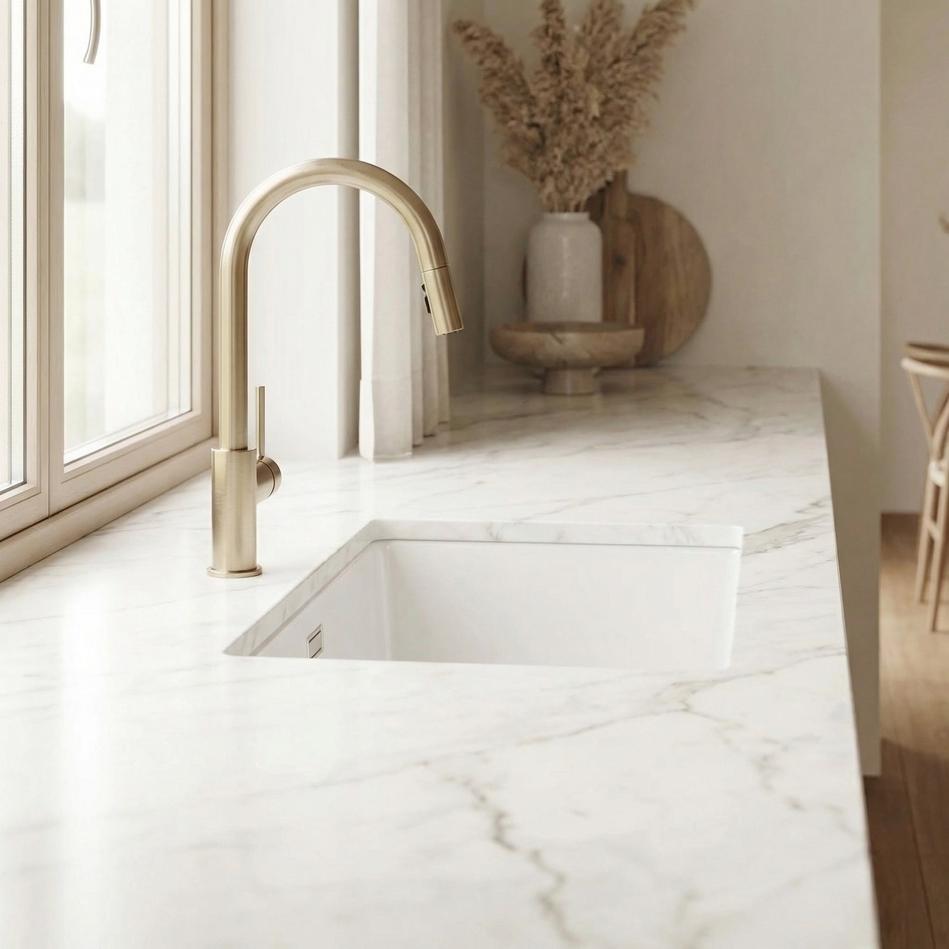 A refined kitchen space combining modern functionality with timeless design elements.