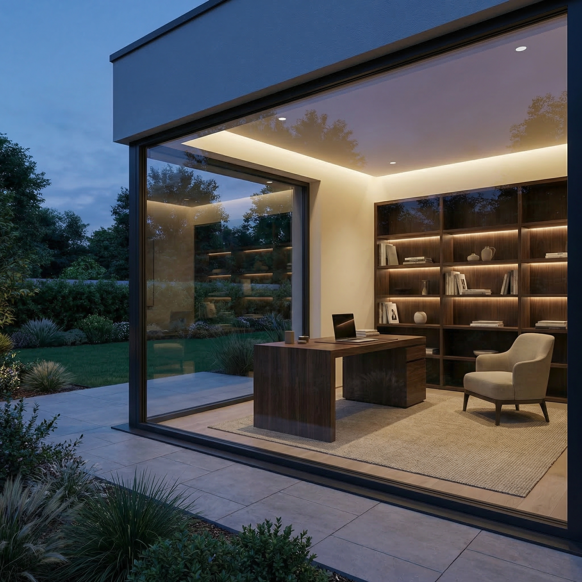 Minimal décor ensures the focus remains on productivity while preserving the refined design language of the interior.